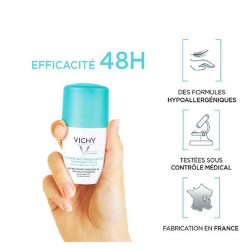Vichy Déodorant Roll-on anti-transpirant - Peau sensible ou épilée. Pour les femmes, à la peau sensible et épilée, qui...