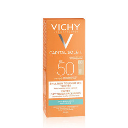 Vichy Capital Soleil Toucher Sec Emulsion anti-brillance toucher sec Le premier soin solaire SPF 50 au toucher sec durable...