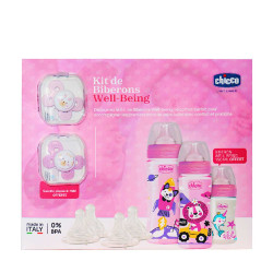 Chicco kit de biberon se compose de : Chicco Biberon Well-Being - 250ML - Rose - 2M+ Chicco Biberon Well-Being - 330ml -...