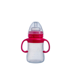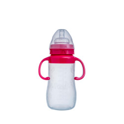Biberon en verre avec tétine en silicone Contenance : 240ml Couleurs: rose / bleu Adapté aux nouveau nés