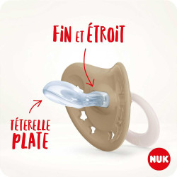 Nuk Favorise une bonne formation des mâchoires grâce à son embout physiologique. En silicone. Tranche d'âge : 0-6 mois