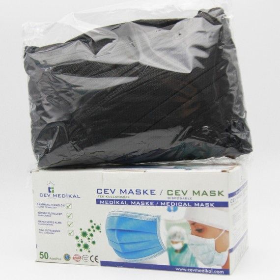 Masque de protection à usage unique avec 3 plis. Existe en bleu et en noir.