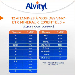 Fatigue, baisse de forme, manque de vitalité Alvityl® Vitalité à avaler est une association complète de 12 vitamines et 8...