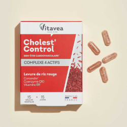 Complément alimentaire formulé avec 4 actifs, à base de levure de riz rouge, extrait de coriandre, coenzyme Q10 et vitamine B9,...