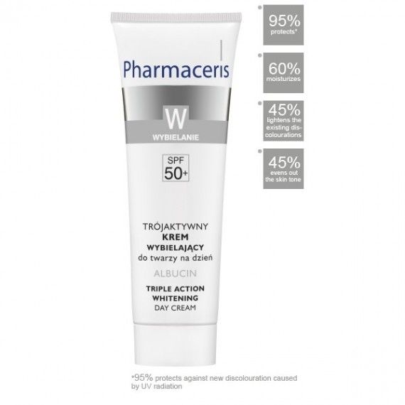 Crème de jour triple action éclaircissement spf 50+ Cette crème de jour recommandée comme un soin quotidien des tâches brunes