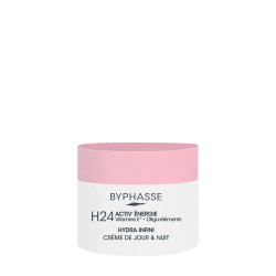 La crème jour et nuit Hydra Infini 24h de Byphasse hydrate durablement les couches supérieures de la peau. DLC 05/2026...