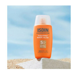 ISDIN FUSION WATER MAGIC GLOW SPF50 est une protection solaire visage à usage quotidien et à la texture ultra-légère effet glow...