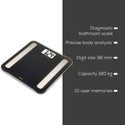 Pèse-personne impédancemètre BG13 de Beurer Balance d’analyse avec analyse corporelle complète de l'IMC et écran XL – jusqu’à...