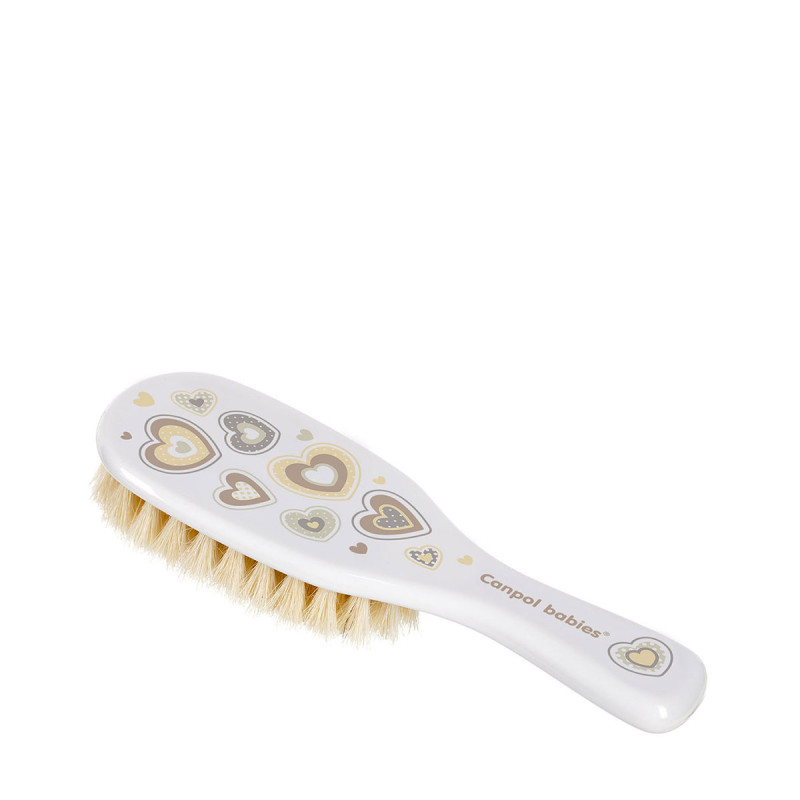 Brosse à cheveux avec des poils naturels et doux et un peigne Nouveau-Né - dans un ensemble. Pour le soin quotidien des cheveux de votre bébé. Le peigne a des dents arrondies qui n'irritent pas la peau sensible de bébé. Brosse doucement en massant la tête du bébé en renforçant ses cheveux. Peut être utilisé événement dans les premiers jours après la naissance. Le kit est disponible en plusieurs couleurs différentes.