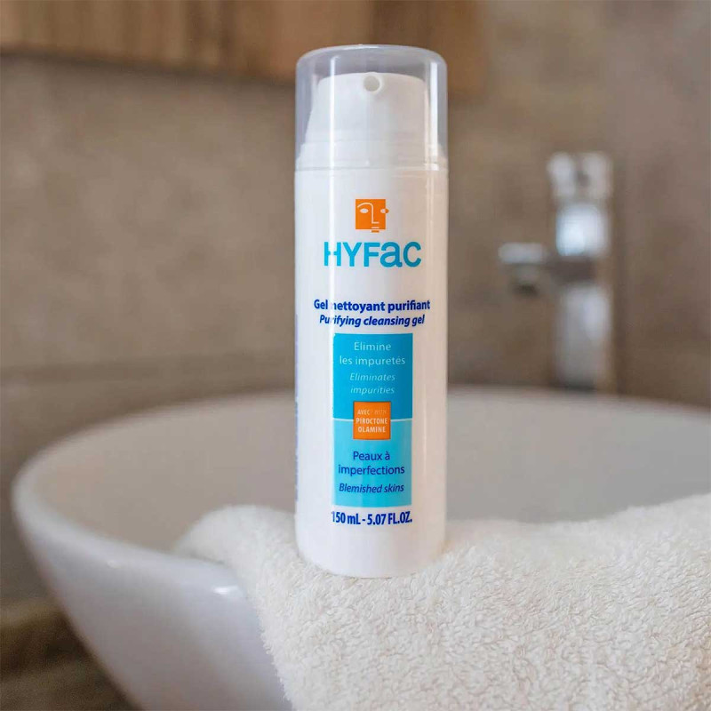 Hyfac gel nettoyant lutte contre les boutons inflammatoires et laisse une peau nette et hydratée.