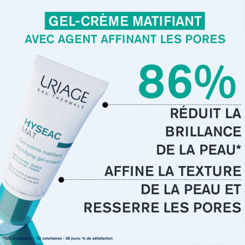 HYSÉAC Mat’ est un soin mi-gel mi-crème qui offre une action matifiante longue durée, tout en hydratant et en affinant le grain de peau. Sa texture légère et délicatement parfumée procure une sensation de fraîcheur et de confort immédiat.