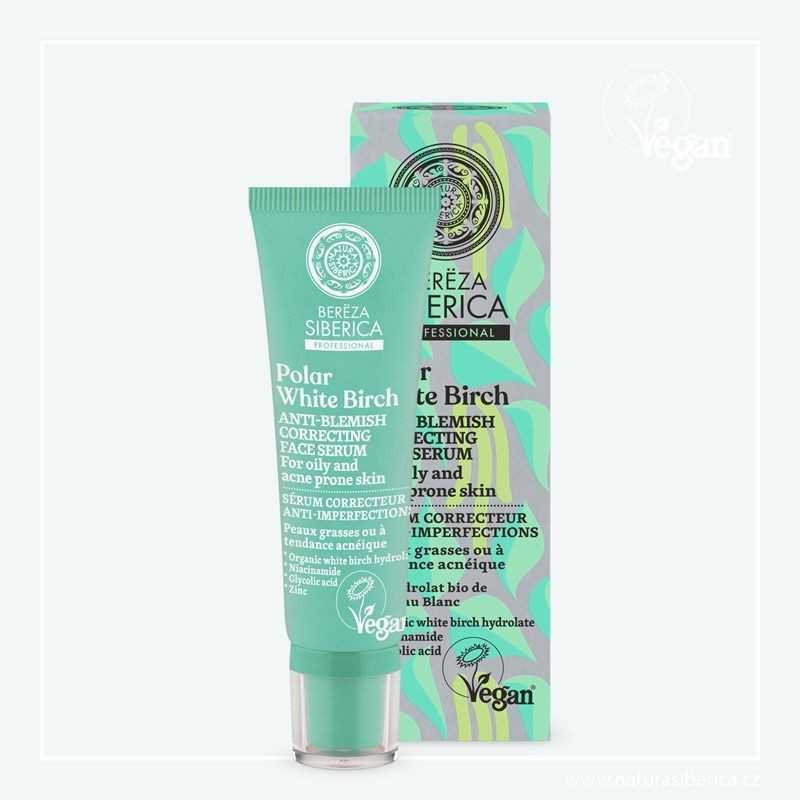 Le sérum pour le visage Natura Siberica Breza – Polar White birch combat les imperfections, minimise les pores et prévient la formation de lésions d'acné et de points noirs.