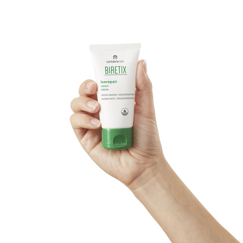 Crème réparatrice pour restaurer la fonction barrière et redonner hydratation et émollience aux peaux sensibilisées par les traitements aux rétinoïdes oraux et/ou topiques.