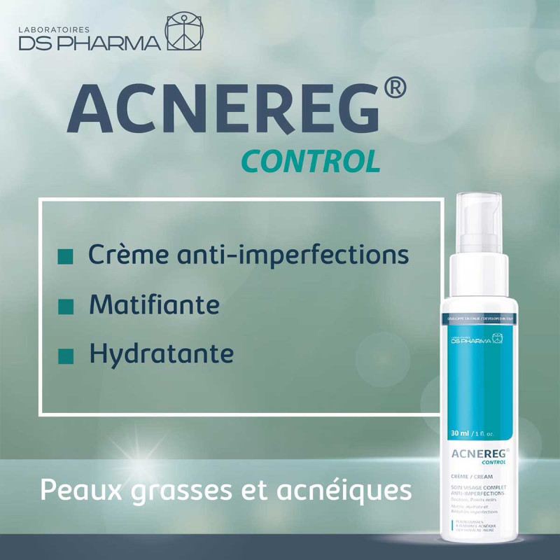 Acnereg Control Crème Soin complet anti-imperfections hydrate let matifie les peaux grasses et les peaux à tendance acnéique tout en resserrant les pores et favorisant la diminution des boutons et des points noirs.