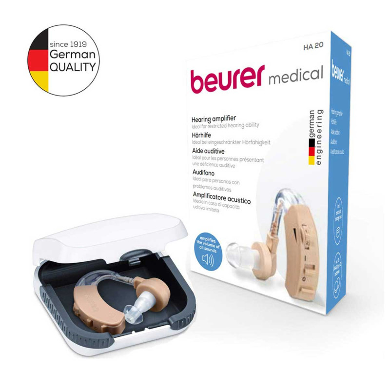 Cette aide auditive Beurer HA20 renforce les capacités d’audition en amplifiant les sons environnants. Un amplificateur auditif ne compensera pas une perte auditive mais va améliorer la perception des sons. Les causes les plus communes de la déficience auditive sont le bruit et le vieillissement, on parle alors de presbyacousie.