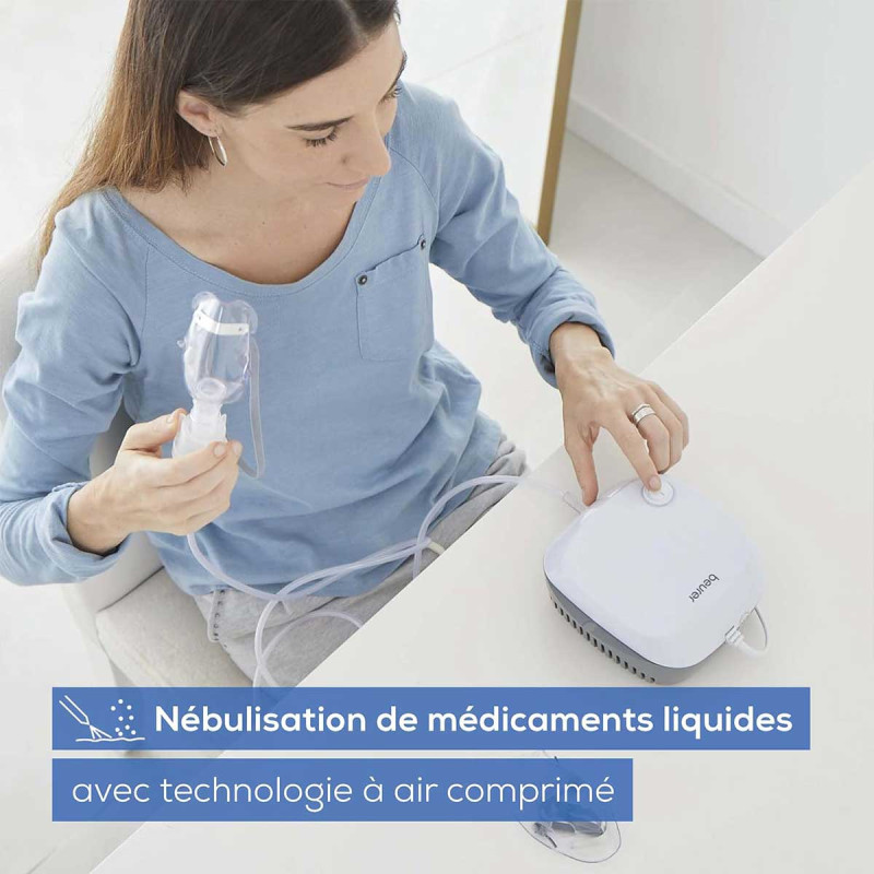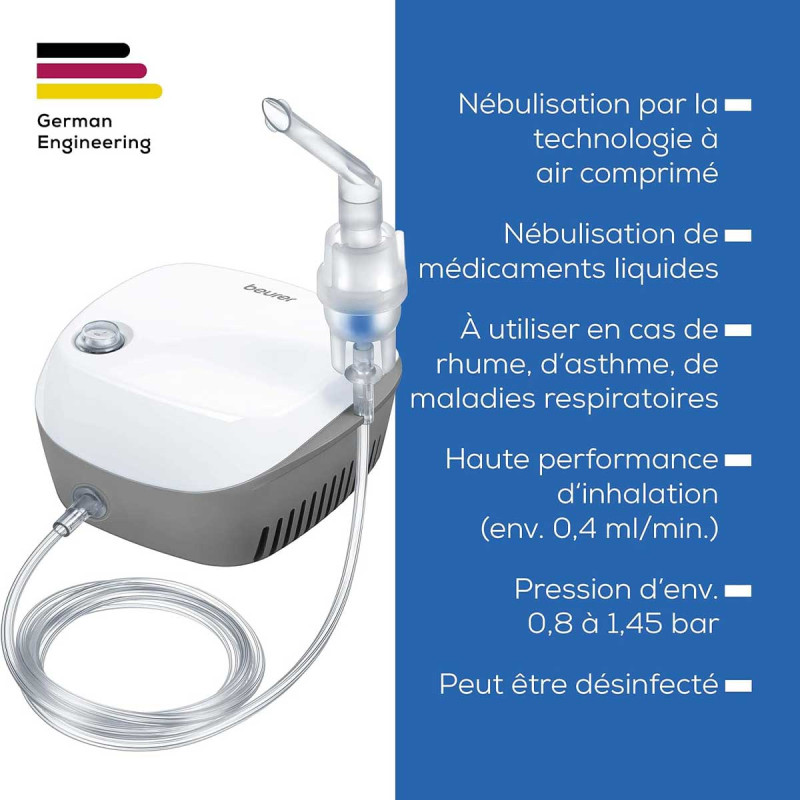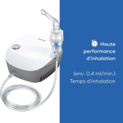 Le Beurer IH 18 est un inhalateur performant conçu pour le traitement efficace des voies respiratoires supérieures et inférieures. Grâce à sa technologie à compresseur à air comprimé, il nébulise rapidement les médicaments liquides, permettant un temps d’inhalation court et agréable, même pour les enfants et les personnes sensibles. Sa capacité à générer des particules fines garantit une pénétration profonde dans les poumons, pour une thérapie ciblée. Compact, hygiénique et livré avec une gamme complète d’accessoires, cet inhalateur est un allié indispensable pour améliorer votre santé respiratoire au quotidien.