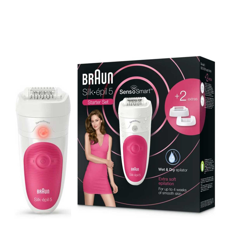 Le kit de démarrage avec l’épilateur Braun Silk-épil 5 Wet & Dry retire les poils courts que la cire ne peut pas attraper, pour une peau douce jusqu’à 4 semaines. Idéale pour les débutantes, la technologie SensoSmart innovante vous guide lors de l’épilation pour appliquer la pression idéale, et permet de retirer ainsi encore plus de poils en un seul passage¹. Sans fil et 100 % étanche, l’épilateur peut être utilisé dans le bain ou sous la douche, pour une épilation en douceur. Avec 2 accessoires incluant des rouleaux de massage et un accessoire de contact avec la peau.