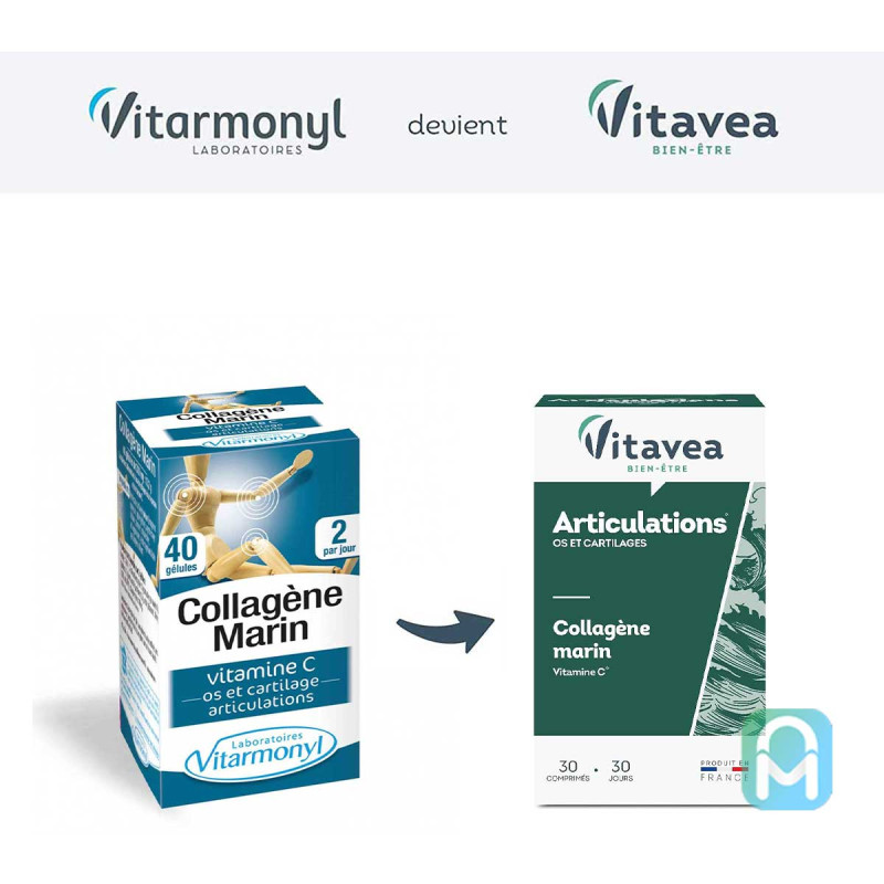 Vitavea Articulation Oc et Cartilages associe du collagène marin à de la vitamine C. Cette formule contribue à la formation normale du collagène afin d’assurer la fonction normale du cartilage.
