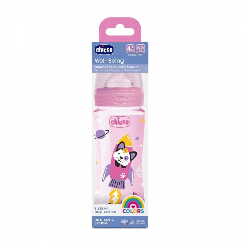 Chicco Well-Being Biberon à débit rapide pour nourrissons de 4 mois et plus avec Tétine physiologique en Silicone souple avec finition Soft Sense