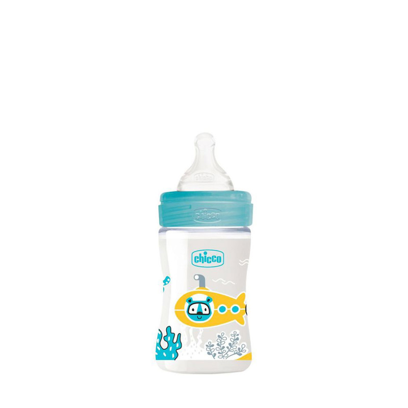 Chicco Well-Being Biberon à débit lent, Biberon pour nourrissons 0 mois et plus avec Tétine physiologique en Silicone souple avec finition Soft Sense