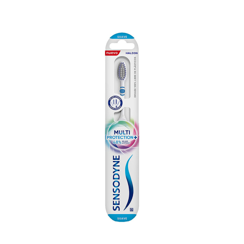 Brosses à dents multi protection pour les personnes ayant les dents sensibles. Grâce à sa petite tête inclinée, ses filaments externes doux et ses filaments internes torsadés, la brosse à dents Sensodyne Multi-Protection nettoie l’émail et les gencives et élimine la plaque dentaire pour un nettoyage efficace des dents sensibles.