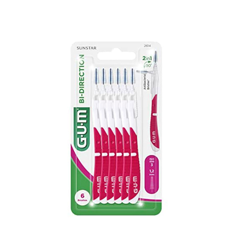 GUM Bi-Direction - Brossettes interdentaires - taille 1,2 - rose - 6pcs