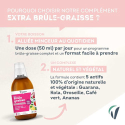 Notre boisson Extra Brûle Graisse Vitavea est votre alliée pour brûler et déstocker les graisses de réserve et combattre les kilos superflus. Sa formule est un concentré de 5 actifs star de la minceur et la perte de poids que sont le guarana, le café vert, l'ananas, le kola et la groseille. Une formule choc à boire au bon goût fruits rouges.