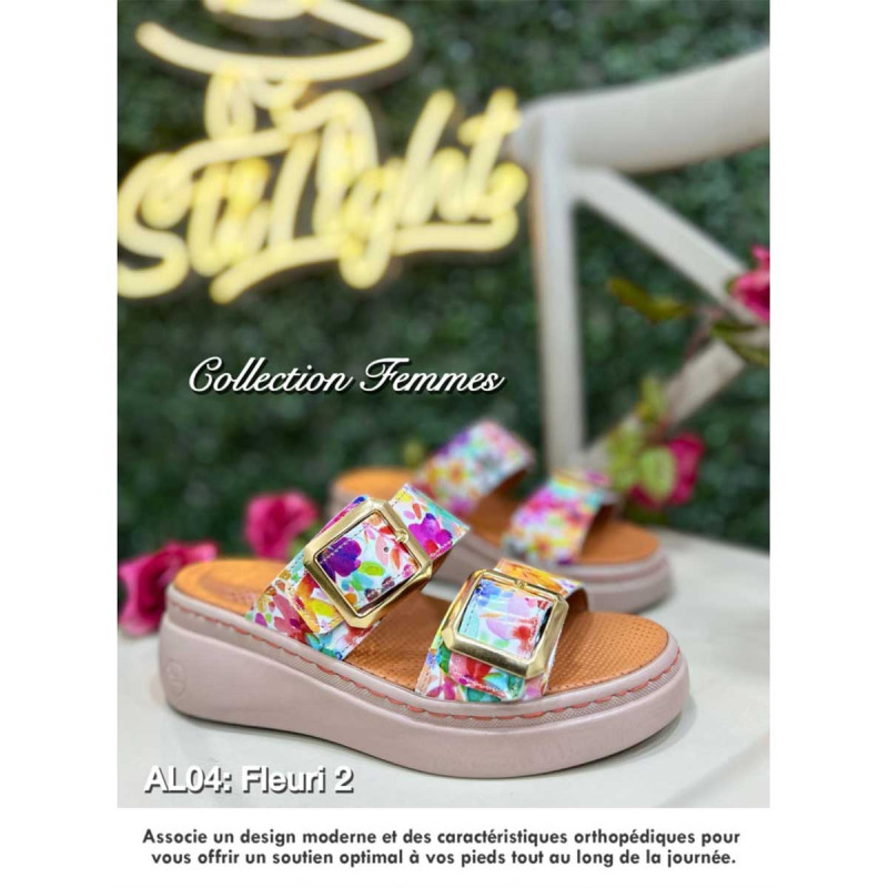 Offrez à vos pieds le soin qu’ils méritent avec la claquette orthopédique AL04 Fleuri, un modèle 100 % tunisien pensé pour allier confort durable et style moderne.