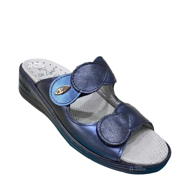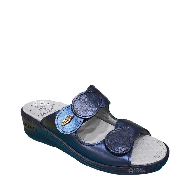 Découvrez la claquette EV013 en bleu nuit, un modèle conçu pour offrir un confort exceptionnel, avec un système de fermeture ajustable par scratch, parfait pour un usage quotidien.