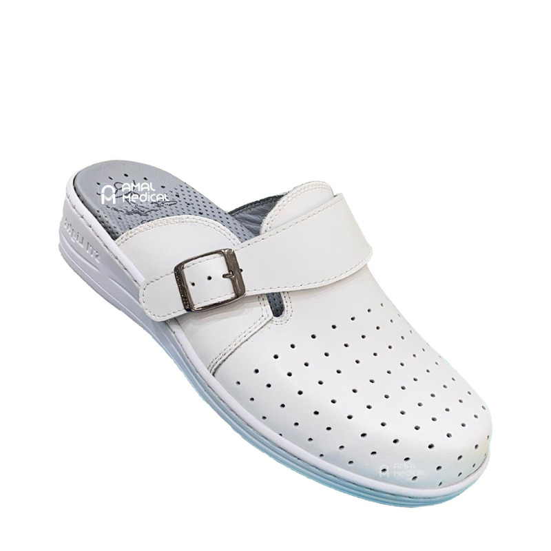 Disponible en noir classique et en blanc perforé, ce sabot se distingue par son design simple et élégant. Le modèle perforé permet une meilleure ventilation et est particulièrement adapté pour un usage prolongé dans des conditions de chaleur. La bride ajustable permet un ajustement sur mesure pour un confort optimal tout au long de la journée.