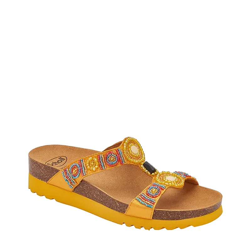 New Bogotà est la véritable sandale culte de Scholl qui séduit depuis des décennies les Scholl Lovers avec le jeu de couleurs de ses perles tressées à la main qui animent les journées d'été.