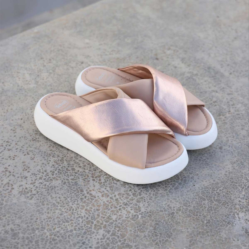Le modèle Scholl Boca Cross est une paire de mules pour femmes qui fait partie de la collection printemps été. Cette mule est conçue pour offrir un confort optimal tout en étant élégante, la semelle spéciale dotée de la technologie Scholl Memory Cushion® accueille votre pied en douceur en redistribuant la pression sur toute la semelle, ce qui rend chaque pas plus léger.