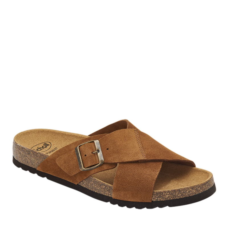 Tangor est le chausson doté de la technologie Scholl Bioprint®, caractérisé par une semelle intérieure caractéristique en liège naturel et caoutchouc conçue de manière ergonomique pour maintenir le pied dans la bonne position. Modèle pratique et décontracté, la tige se caractérise par une croix en cuir qui épouse délicatement le pied. La boucle en métal permet un ajustement parfait au pied.