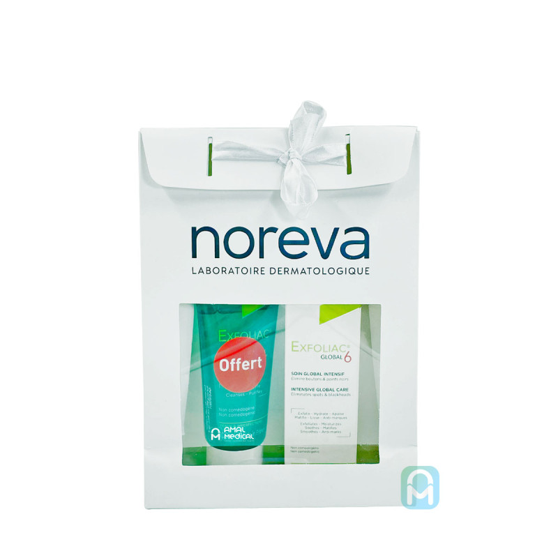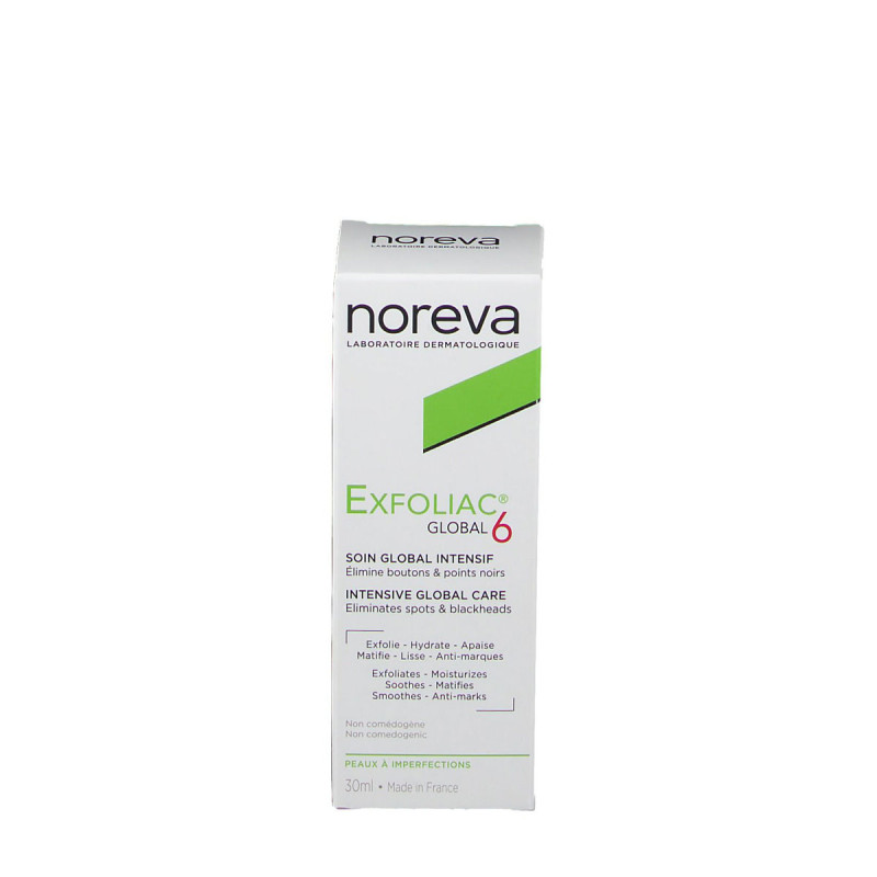 Luttez efficacement contre les imperfections sévères avec le soin Exfoliac® Global 6. Ce coffret complet purifie, corrige, hydrate et apaise la peau en douceur et vouz trouvez en bonus, un Gel Nettoyant Exfoliac® 100ml offert pour une routine anti-acné renforcée !
