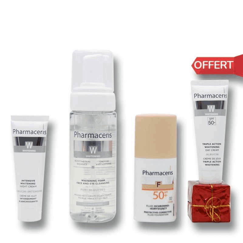 * Crème de jour SPF50+ , Anti-Tache ( GRATUIT ): crème de jour qui est destiné pour le soin quotidien de la peau avec les décolorations .