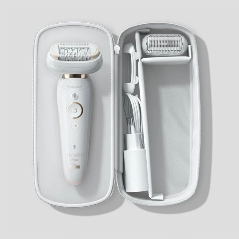 Epilateur électrique Braun Max Braun MB SES9F - 2 Vitesses / Smart Light - 40 pincettes / Lavable / Tête Flexible 360° - Technologie MicroGrip - Vibrations pulsatives actives / Technologie SensoSmart - Tête rasoir + accessoire tondeuse - Accessoire de contact - Coffret de rangement spécial 100ans