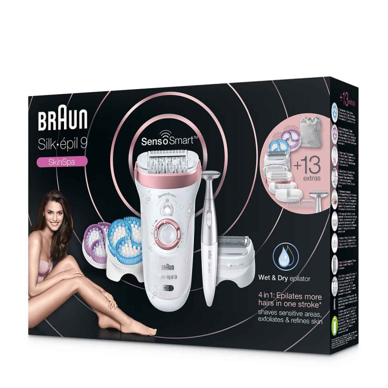 L’épilateur électrique Braun Silk-épil 9 SkinSpa SensoSmart™ est le premier épilateur intelligent au monde. Silk-épil SkinSpa est une solution complète 4 en 1 avec un système d’épilation, d’exfoliation et de soins de la peau. L’épilateur est doté de la technologie de capteur de pression SensoSmart, pour vous guider pendant l’épilation et retirer encore plus de poils à chaque passage. Le meilleur épilateur Wet & Dry de Braun comporte 2 brosses exfoliantes pour éviter l’apparition de poils incarnés. Avec 13 accessoires incluant un rasoir et un accessoire tondeuse pour les zones sensibles, une tondeuse bikini, un accessoire de contact avec la peau, un capuchon visage, une trousse et un socle.