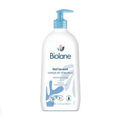 Le gel lavant corps et cheveux Biolane nettoie en douceur et préserve la peau fragile de votre bébé pour qu'elle reste souple, douce et confortable.