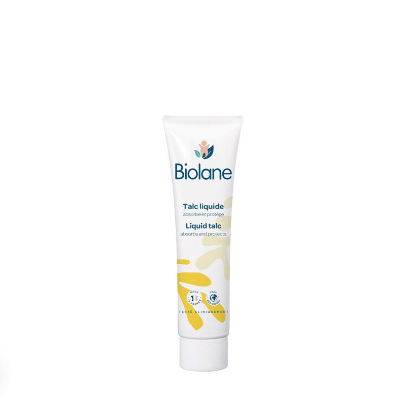 Le talc liquide hypoallergénique de Biolane est une nouvelle formule d'émulsion qui, au contact de la peau, se transforme en talc. Sa formule reproduit toutes les propriétés du talc classique tout en évitant les problèmes de volatilité d'une poudre.