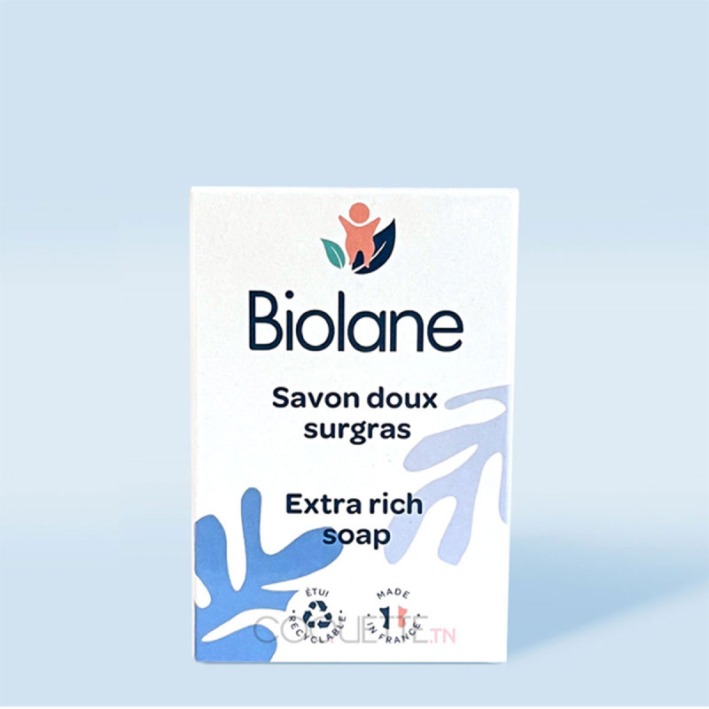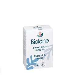 Le Savon Doux Surgras de Biolane a été spécialement formulé pour la toilette quotidienne des nouveaux-nés.