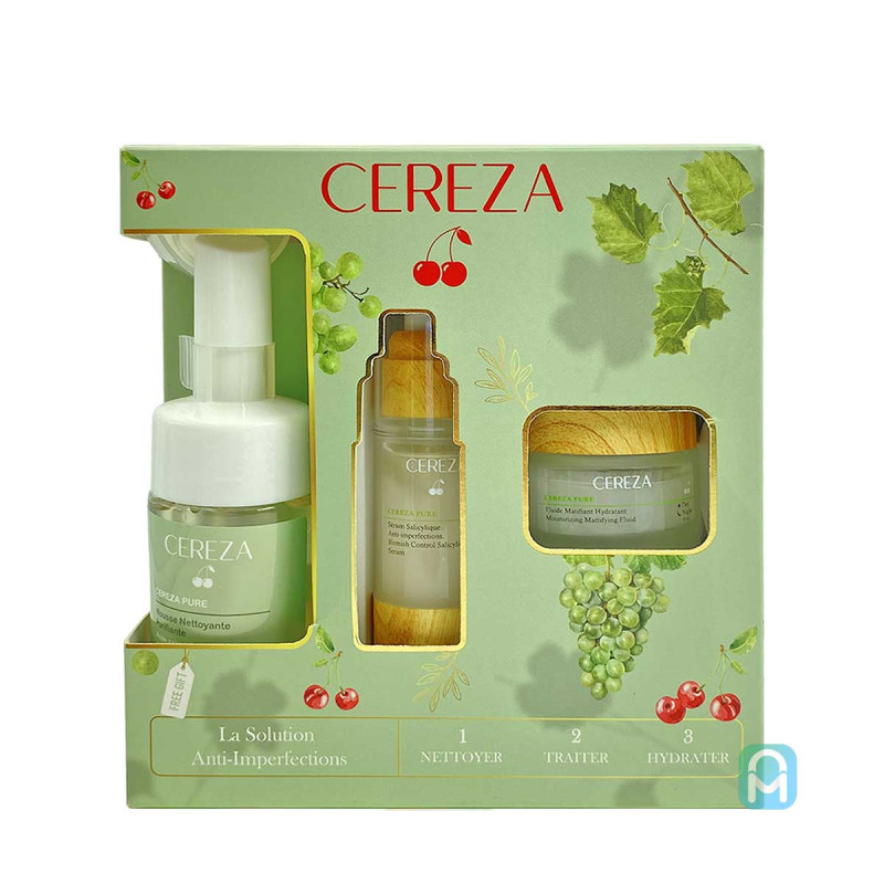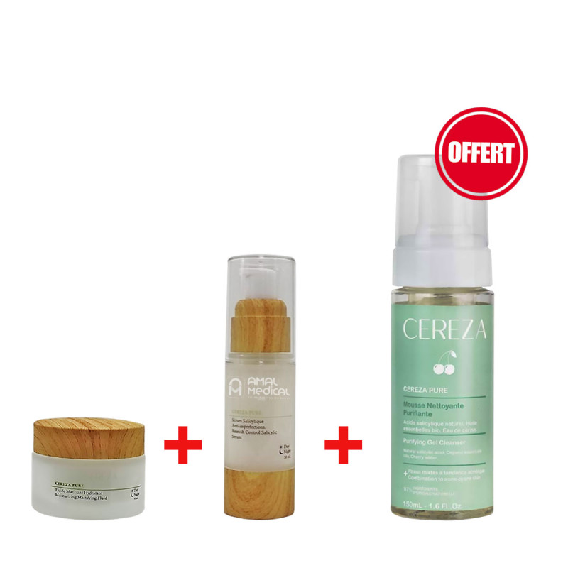 Ce pack riche en actifs appréciés pour la peau grasses à tendance acnéique est composé de :