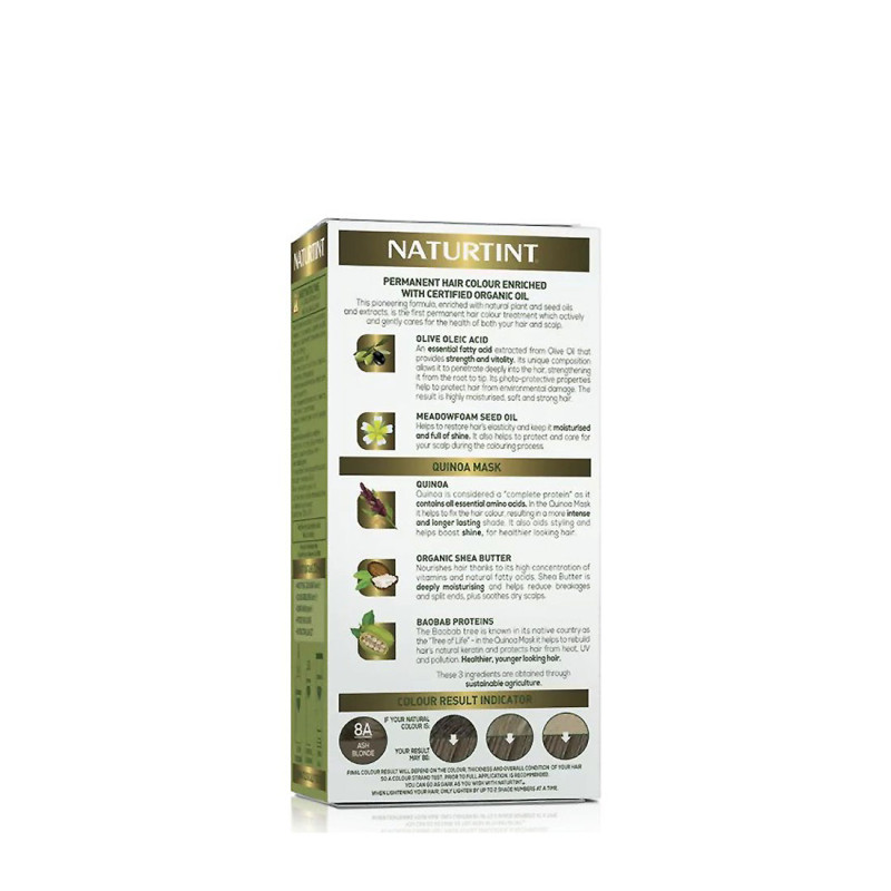 Naturtint® Colorant 60 ml: Peg-2 Oleamine. Aqua (Purified Water). Alcohol Denat. Peg-4 Rapeseedamide. Propanediol. Ethanolamine. Oleic Acid. Hydrolyzed Oat Protein. Hydrolyzed Corn Protein. Hydrolyzed Soy Protein. Hydrolyzed Wheat Protein. Limnanthes Alba Seed Oil. Tetrasodium Glutamate Diacetate. Sodium Metabisulfite. Sodium Erythorbate. P-Phenylenediamine. 4-Chlororesorcinol. 2-Methylresorcinol. 2-Amino-4-Hydroxyethylaminoanisole Sulfate. N,N-Bis (2-Hydroxyethyl)-P-Phenylenediamine Sulfate. M-Aminophenol. Octadecyl Di-T-Butyl-4-Hydroxyhydrocinnamate.