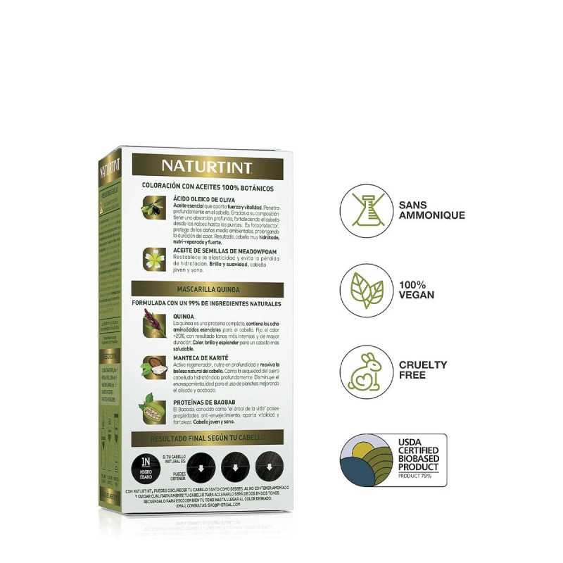 92% d'ingrédients d'origine naturelle, y compris des huiles et des extraits de plantes et de graines soigneusement choisis pour leurs bienfaits prouvés sur les cheveux et le cuir chevelu. Sans ammoniaque, végétalien.