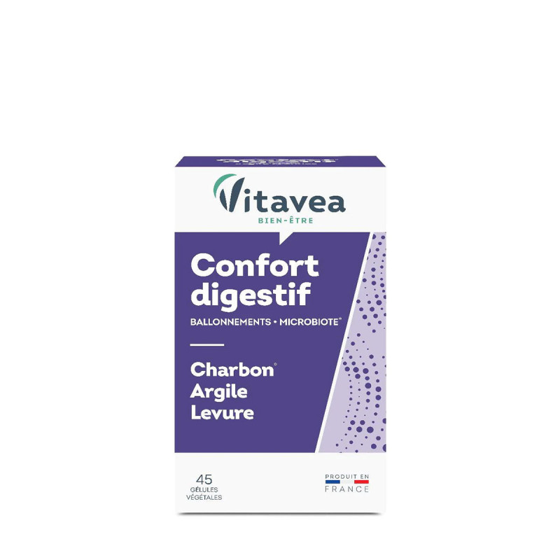 Le complément alimentaire Vitavea au charbon végétal, argile et levure est votre allié en cas d'inconfort digestif. Sa formule est composée d'actifs star pour le confort digestif à base de charbon actif, argile et levure. Ce complément alimentaire Vitavea est particulièrement indiqué pour le confort digestif, en cas de ballonnement, pour le microbiote, dans le cadre d'une alimentation saine et équilibrée pour favoriser un ventre plat