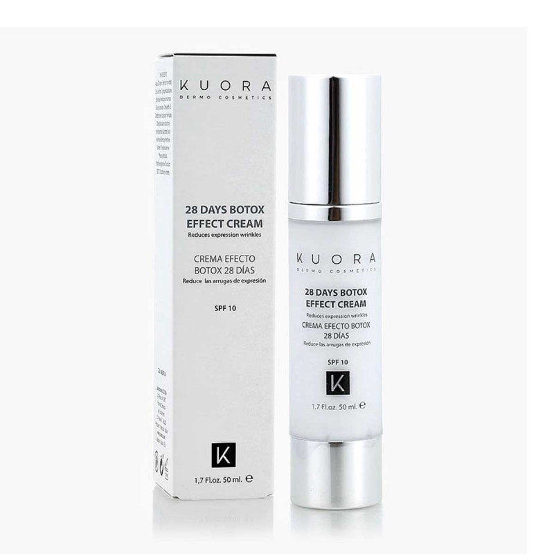 La crème Fluide effet botox Kuora Convient pour traiter et réduire les rides et ridules d'expression pour tous les types de peau elle donnant