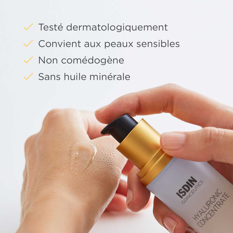 Appliquez Hyaluronic Concentrate matin et soir directement sur la peau propre et sèche du visage, du cou et du décolleté. Massez le gel avec des mouvements circulaires jusqu'à absorption complète.