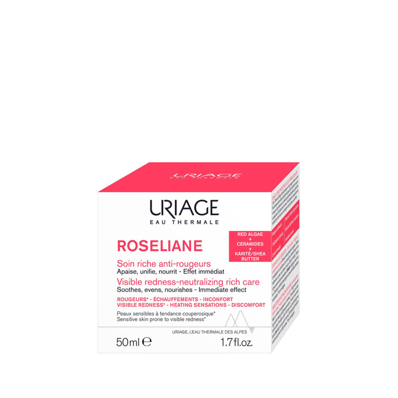 Le Soin Riche Anti-Rougeurs ROSELIANE d'Uriage aide à diminuer et à prévenir les rougeurs tout en les apaisant immédiatement et durablement. Il est dédié pour Les peaux sensibles à tendance couperosique.