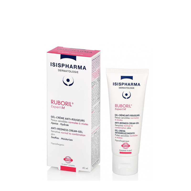 Ruboril Expert M gel-crème, aide à lutter contre les rougeurs diffuses et les petits vaisseaux apparents.