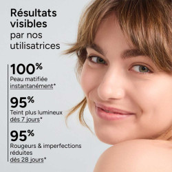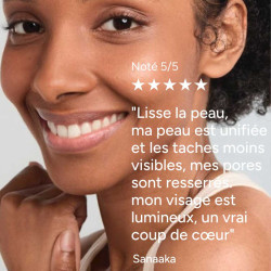 (1) Test d'usage réalisé sur 33 volontaires à la peau terne et présentant des taches pigmentaires sur le visage. Application biquotidienne pendant 56 jours. % de satisfaction