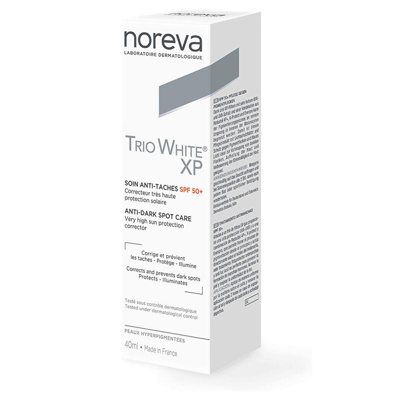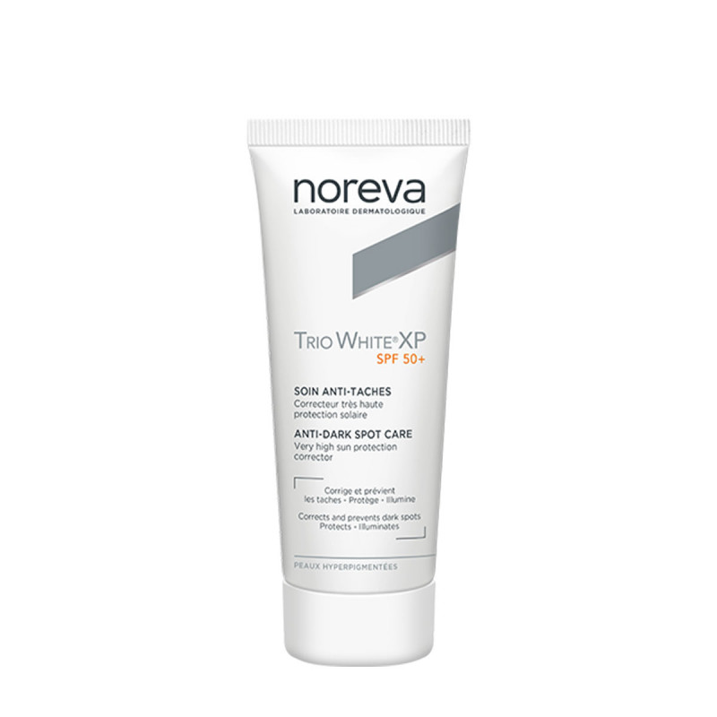 Le Trio White XP SPF 50+ de NOREVA est spécifiquement formulé pour réduire et prévenir les taches brunes liées aux expositions solaires, masques de grossesse, taches de photosensibilisation, peelings, lasers, …